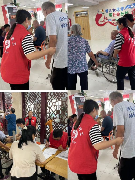 活动现场由志愿者和社工协助黄河医院医生开展义诊志愿者服务活动,在服务过程中,社工对于腿脚不好的老人,主动引导和搀扶,志愿者们与老人们亲切交流,详细分析他们目前的身体健康状况,并进行相关疾病预防常识的普及,切实地为老人们带去温暖和关爱,让更多需要关怀和帮助的老人能得到实实在在的服务。,志愿者叮嘱老人保重身体、注意饮食,保持好积极乐观的心态。