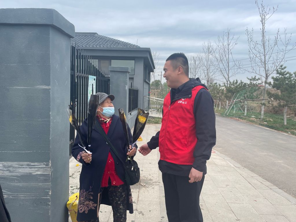 “思亲莫让烟尘扰,鲜花一束慰先人。”为引导群众摒弃祭祀旧习,弘扬时代新风,临港街道社工站在胡家岸公墓开展“鲜花换火纸”活动,引导和劝服前来祭祀的居民将所携带的火纸、冥币等传统祭祀用品换成鲜花,倡导文明环保祭祀新风尚。