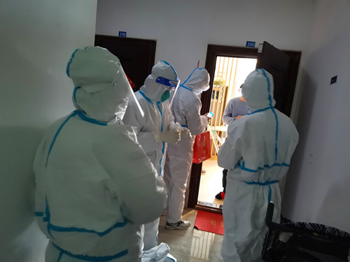 三月,应该是春暖花开的季节,应该是微风细雨、孕育生命的季节。然而从28号开始,因疫情发生变动,给大美济南全体市民带来了诸多的不便和惆怅。3月31日从早上8点到晚上6点半,山泉驻槐荫区南辛庄街道社工站分别接到街道分管领导电话通知,因街道片区某某小区内出现密接群众,个别单元楼需要紧急进行全员核酸检测,人手紧张急需人员支持。社工站社工收到命令后积极行动,火速驰援,到达居委会听从社区书记安排,领取并穿着防护服,第一时间到指定的小区单元楼内与社区医院医护人员一同配合进行每家每户全员1轮及2轮核酸检测,排除病毒风险。