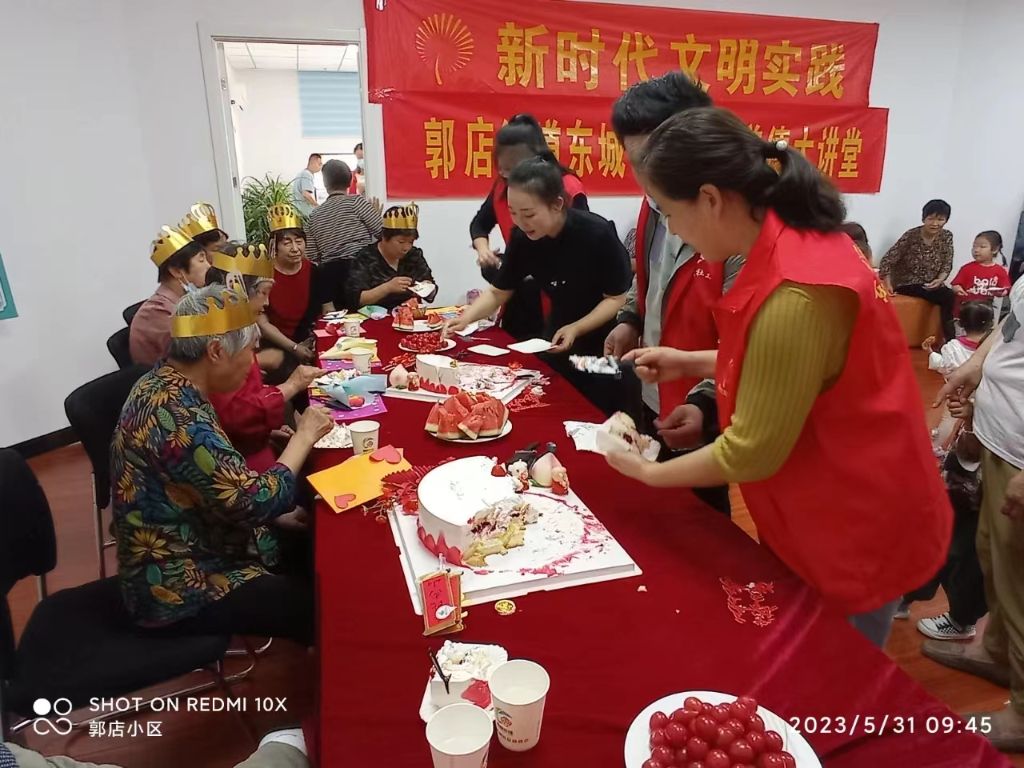 为弘扬中华民族孝亲敬老传统美德,培养孩子感恩意识,让老年人发挥“老有所用”的精神,在社区营造爱老敬老的氛围,丰富老人精神生活,减少孤独感,以满足其归属与爱和尊重的需要。2023年5月31日,郭店街道社工站联合东城名郡社区、梧桐树幼儿园开展“情暖桑榆,同心许愿”老年人集体生日会。
