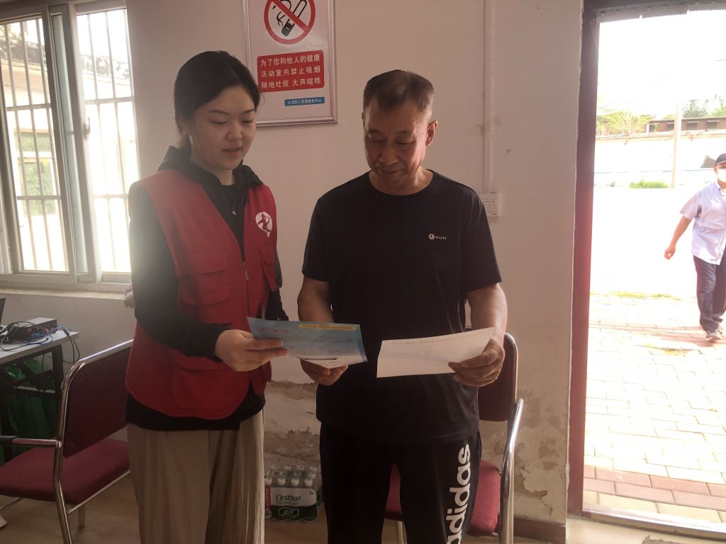 义诊区域,医务人员为每一位前来就诊的居民提供问诊服务,测量血压、检测听力、检查视力、筛查白内障及眼科疾病等项目等指标,耐心地询问他们的仔细询问病史、生活习惯及身体状况。社工现场向居民发放健康知识宣传资料,并科普常见疾病的预防和日常保健的方法。许多居民表示通过这次义诊,深刻认识到到了定期体检和日常保健的重要性,今后要更加关爱自己的身体。