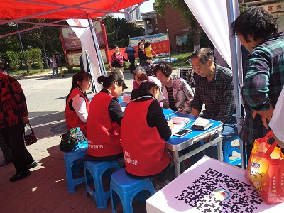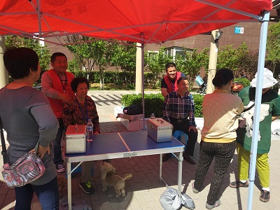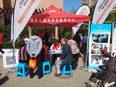 5月4日上午,新世界阳光花园社工联合槐荫区综合养老服务中心进入社区为居民提供“为爱而行”社区公益活动。
