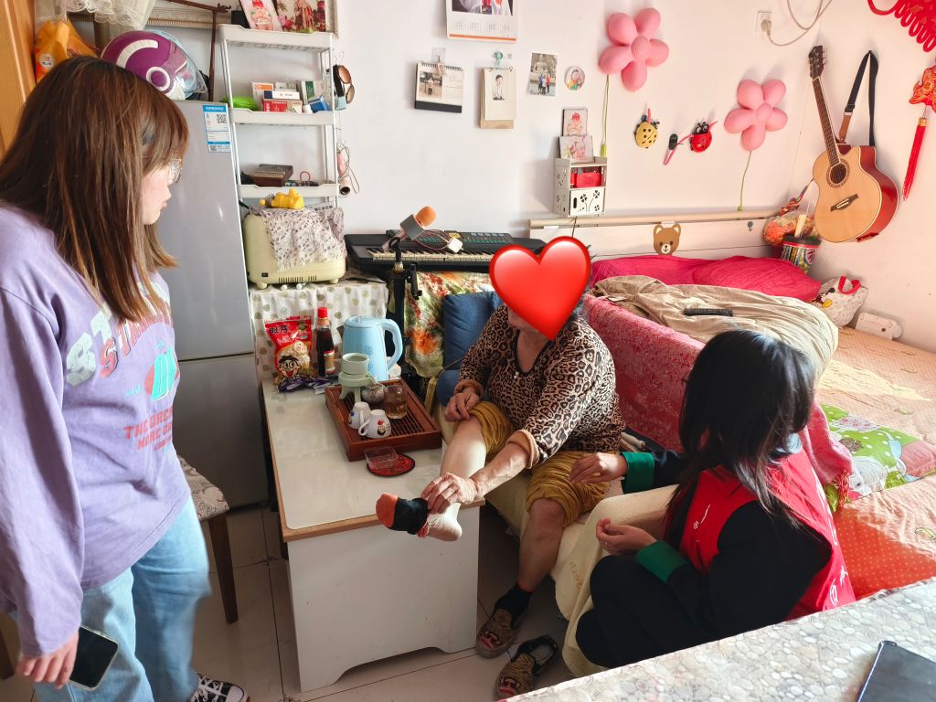 “阿姨,最近身体怎么样啊,腿部针灸管事儿吗?”,驻站社工向服务对象曹阿姨(化名)进行日常询问,“最近经常睡不着,腿疼的厉害...”社工见状,立即前往曹阿姨家中了解情况。