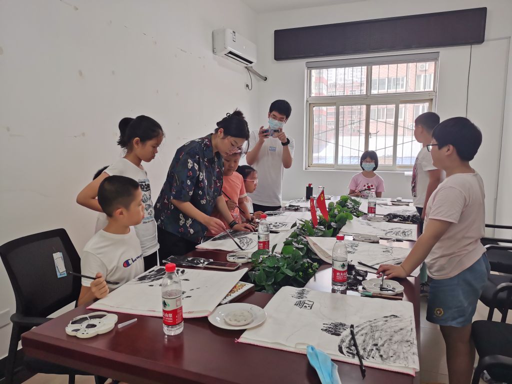 此次国画公益培训班,段店北路街道社工站在为辖区青少年搭建趣味学习及社区参与平台的同时,还扩大宣传途径招募到社区青少年志愿者加入到此次国画公益培训班,协助老师教学、帮助孩子们清洗毛笔,整理绘画用品,成为公益课堂不可或缺的一部分。