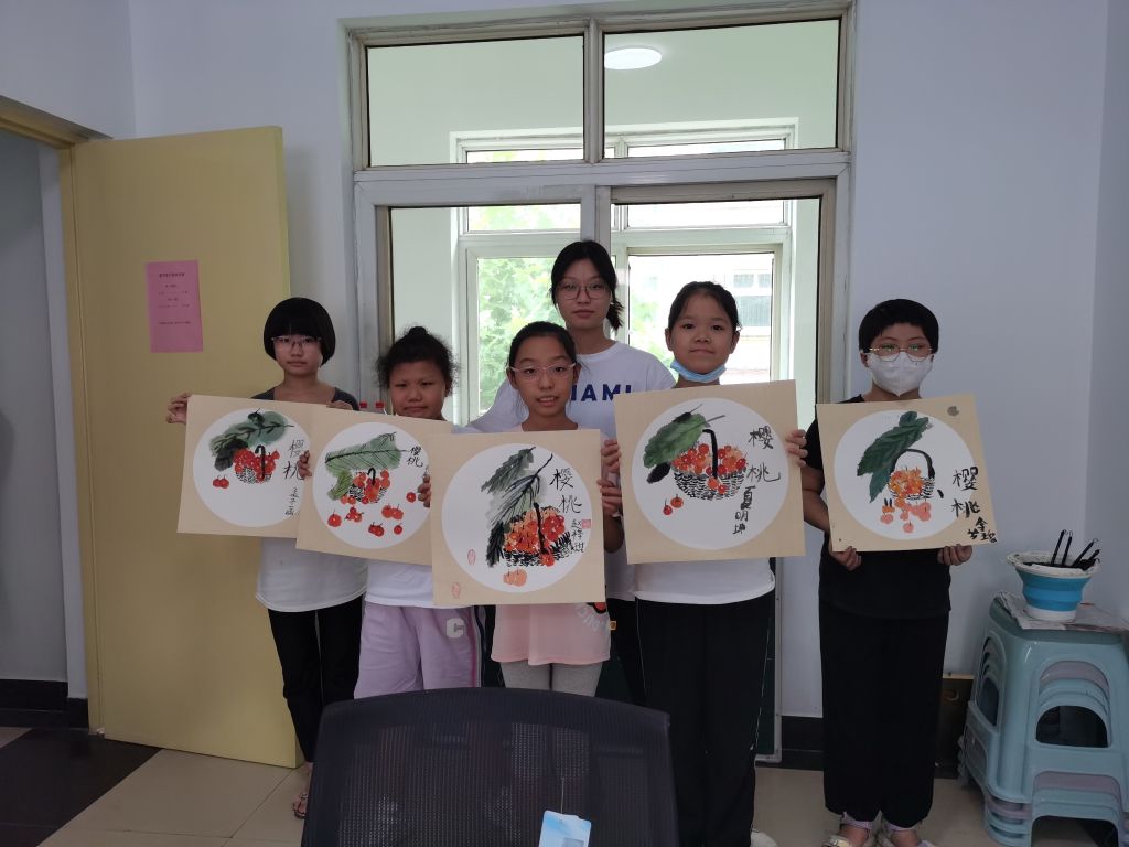 孩子们从最初的国画小白到课程结束能够独立完成一幅完整的国画作品,不仅丰富了青少年的暑期课余生活,同时也培养了青少年对传统文化的兴趣,提高了青少年的审美能力。孩子们在周老师的指导下,一笔一划、有模有样,通过周老师由浅入深的教导,孩子从颜色单一的山水到丰富多彩的水果,栩栩如生的作品跃然纸上。