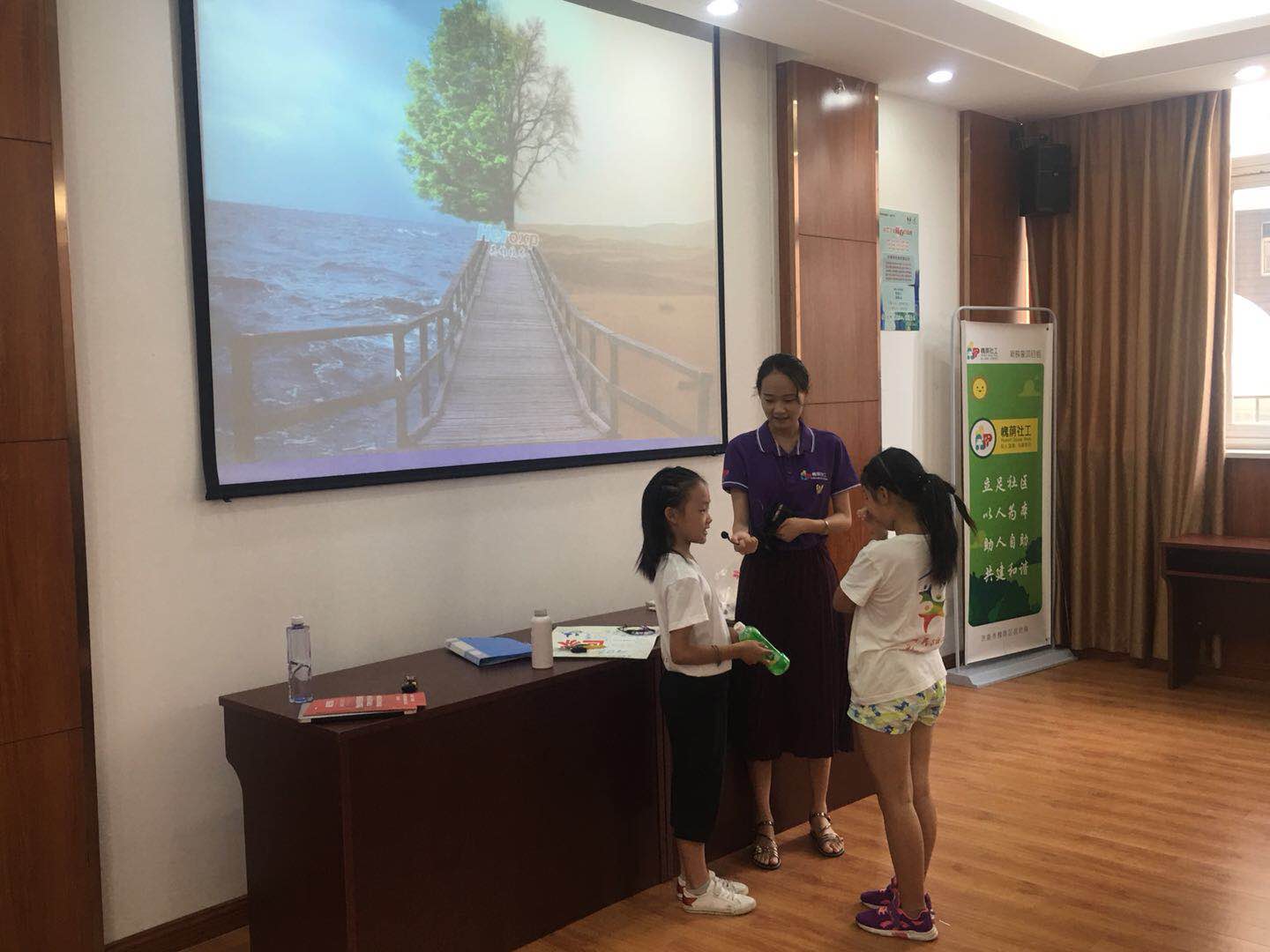 活动伊始,社工组织小营员们开展“击鼓传花”的游戏,活跃现场气氛。随后由善艺教育李老师与大家分享丰富多彩的图片,启发小营员们创作的灵感。接着李老师引导每组的小营员构思手工作品的框架,把面前各式各样的废品加以利用。每个孩子都是无拘无束、天马行空的艺术家,废品在他们手里又重新复活,变成了高楼大厦、滑梯、泳池、船只.......。小组成员齐心协力,克服制作过程中的一个个难关,激烈的讨论、默契的配合,收获着友情与作品,在动手与协作中得到满足,获得成就感。最后,小营员们为自己的创意世界增填上多彩的颜色。
