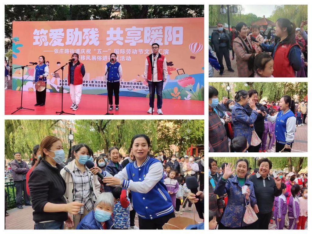 在“五一”国际劳动节来临之际,为促进“社区、社会组织、社工、社会资源及社区自治组织”更好的联动,加强社工站与居民的联系,营造欢乐、融洽、温馨的社区氛围,4月26日,张庄路街道社工站联合张庄路街道党工委、张庄路街道办事处 、明星社区党委、明星社区居委会开展“筑爱助残,共享暖阳”为主题暨庆祝“五一”国际劳动节文艺汇演活动。张庄路街道公共文化服务中心主任郭传丽、张庄路街道办事处一级主任科员付晓娟、张庄路街道办事处综合治理服务中心副主任赵胜、社区党员、群众志愿者代表及广大居民朋友参加活动。