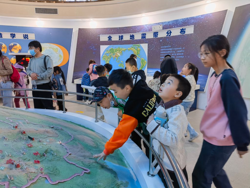 第二站孩子们依次参观了地球厅、中国历史地震长廊、地震厅、山东厅,通过听讲解、看图片、观模型,大家较为全面地了解了地球内部结构,学习了地震发生的原理,对地震的基本知识以及地震的发生过程有了更为形象直观的认识。