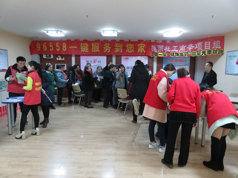 针对冬季养生,槐荫社工南辛项目组开设了健康专题活动,为丰富活动形式和活动内容,并进一步扩大社工影响,招募更多的服务对象,项目组联合链接到的贴心一键通公司于12月8日上午在南辛庄街道家园中心开展了“微微一量,健康多彩”微量元素检测活动。
