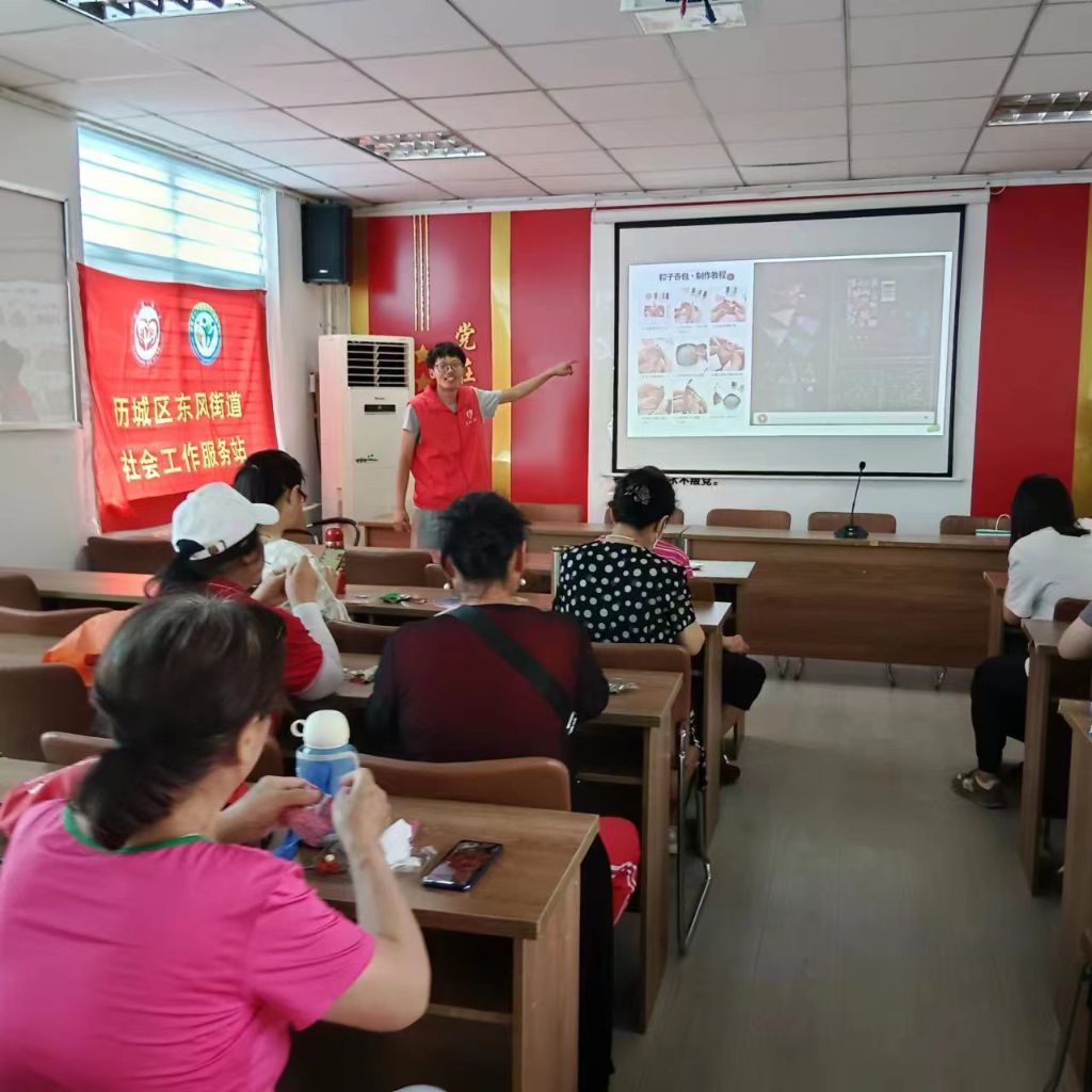 每年的五月初五,是中国民间的传统节日——端午节。为增强辖区居民对传统节日的了解,让大家在手工中感受传统节日的魅力。6月21日,东风街道社工站联合七里堡南北社区开展“浓情过端午 巧手做香囊”活动。