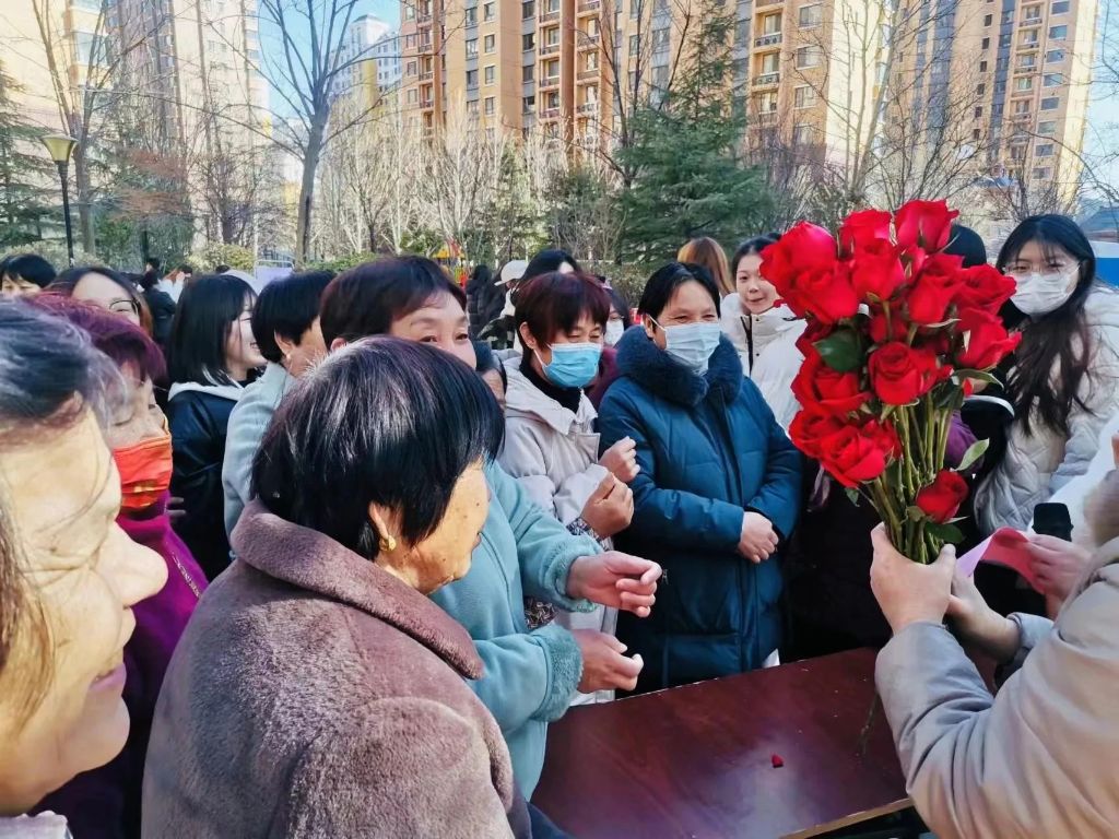 一声声古诗问答吸引了居民的注意力,原来是以古诗答题的方式向女性朋友们赠送玫瑰花,充满了诗意和文化气息。通过古诗答题,增强了居民对传统文化的兴趣与了解。营造温馨、浪漫的节日氛围,向女性朋友们表达敬意与祝福。不仅能够让女性朋友们感受到节日的温馨与祝福,还能在轻松愉快的氛围中增进对传统文化的了解与喜爱。