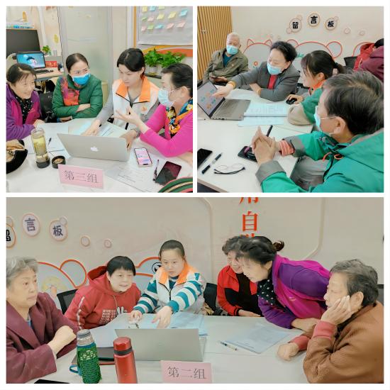 专题培训围绕项目路演PPT制作进行讲解,并为每个小组配备了一名小助手,与社区社会组织骨干共学,协助大家制作项目路演PPT。社工先向大家介绍了路演PPT制作技巧与方法,之后,在小助手的引导下,大家就“项目路演PPT如何制作”纷纷提出自己的想法和建议,“PPT模板应该选这个”“这个PPT模板颜色太淡了”……现场传递着诸如此类的声音,在社工培力陪伴下,大家慢慢掌握了PPT制作技巧,项目路演PPT初具形态。
