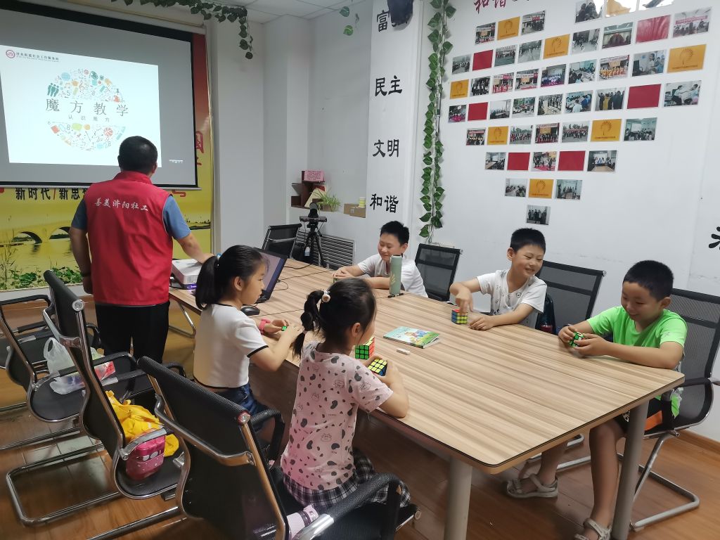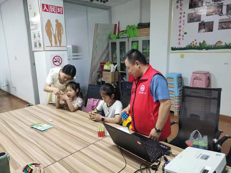 暑假来临,少年儿童的假期照顾、课外兴趣等成了困扰社区居民的首要问题。为了解决部分居民的困扰,丰富少年儿童的暑期文化生活,培养少年儿童的动手能力和兴趣爱好,济北街道社工站启动“童生乐长”少儿志愿服务项目,联合开元社区共同开展了以“魔法开元”为主题的魔方兴趣小组,使其成为社区少年儿童的“营养供给站”。