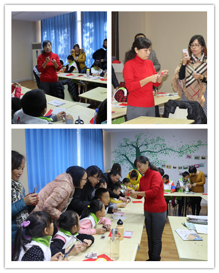 张洪老师首先为小天使们介绍了剪纸的种类、剪纸的技法以及剪纸的步骤。小小的一把剪刀、一张红纸在老师的手上变幻出各式各样栩栩如生的图案,令小天使们十分惊叹!听完老师的介绍之后,小天使们跃跃欲试,开始了今天的剪纸之旅!