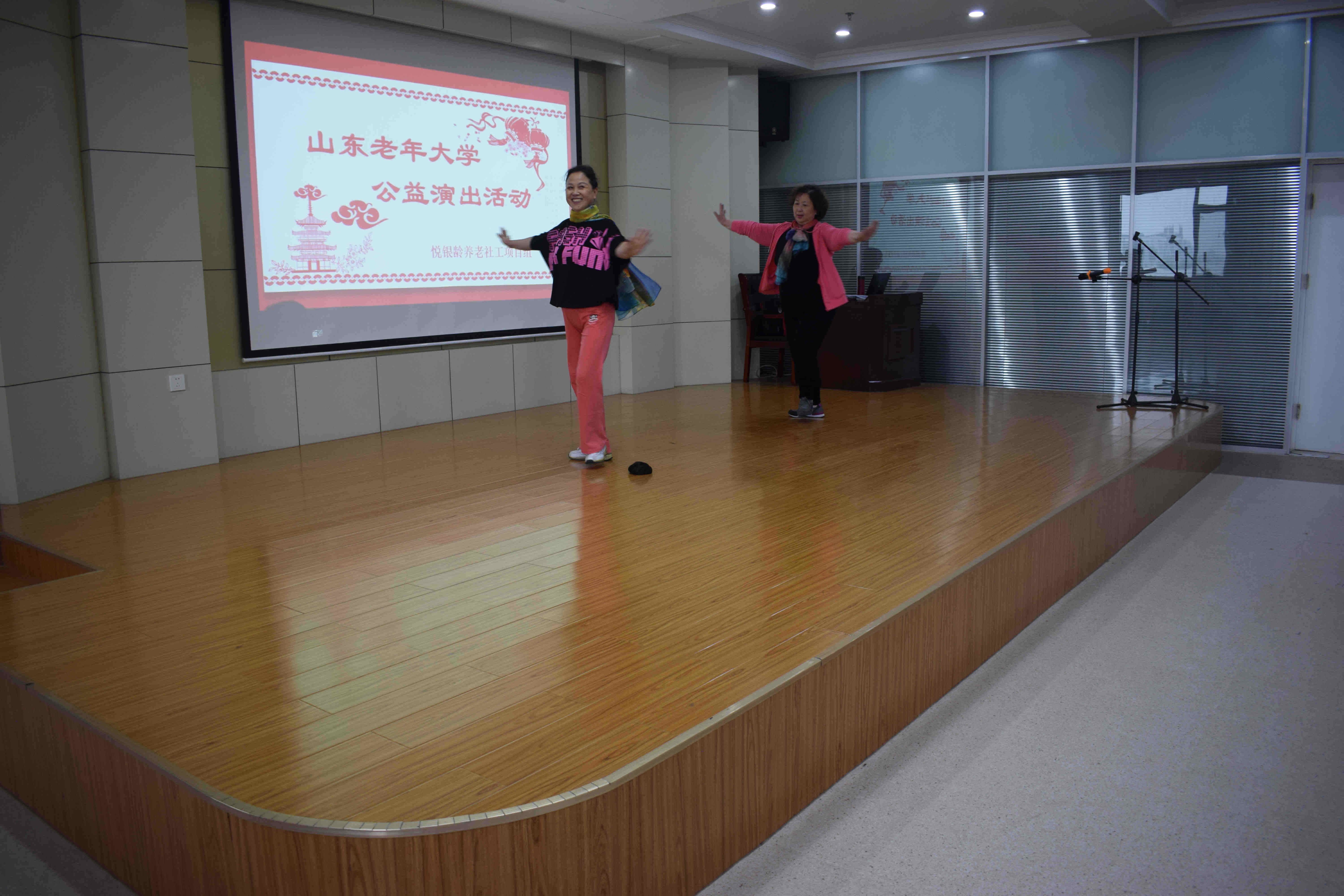 敬老爱老是中华民族的传统美德,老年人是社会成员的重要组成部分,他们丰富的人生阅历、工作经验和生活智慧是社会的宝贵财富。他们都曾在各条战线上辛勤耕耘、默默奉献,如今退休了,他们有资格更有权利在人生的后半段享受前半生奋斗的成果。为了丰富住养老人的日常生活,整合社会资源以形成爱老敬老的文化氛围,4月9日,悦银龄养老社工项目组链接山东老年大学在五楼多功能大厅开展了“情暖四月天”公益演出活动。