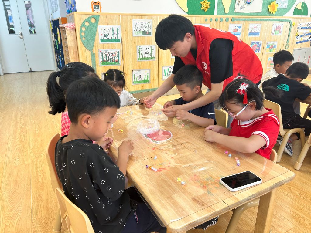 手串在中国古代文化中起到祈求平安,求善缘、镇邪遮煞的作用,为了让辖区儿童感受中国传统文化韵味,培养动手能力和审美情趣,5月15日,董家街道社工站走进董家中心幼儿园开展“童心串珠,串出未来”手链DIY活动。
