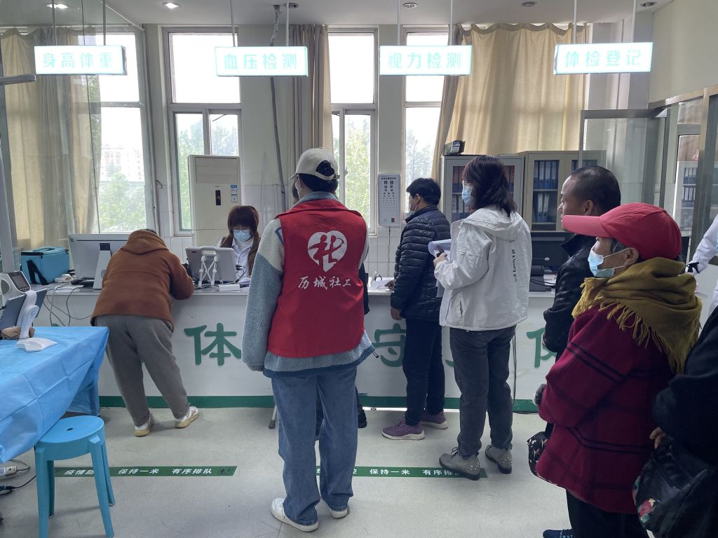此次免费体检活动以关注“特扶家庭”父母健康问题为切入点,为“特扶家庭”提供全面检查,协助他们认识到自己的身体状况,及早做好预防,做到早发现早医治。为他们建立健康档案、免费签约家庭医生。活动过程中,社工在现场进行人员登记、过程引导、维持秩序,并针对高龄老人以及行动不便的老人采取一对一的护送方式,全程陪同完成各项检查,整个过程井然有序。在等待检查的过程中,社工与居民们进行详细地交流,对于他们现阶段的问题和需求进行记录,为接下来有针对性地开展服务奠定基础。社区居民王老师说:“很感谢街道和社工站开展的体检活动,让我们能够及时地了解自身健康情况”。