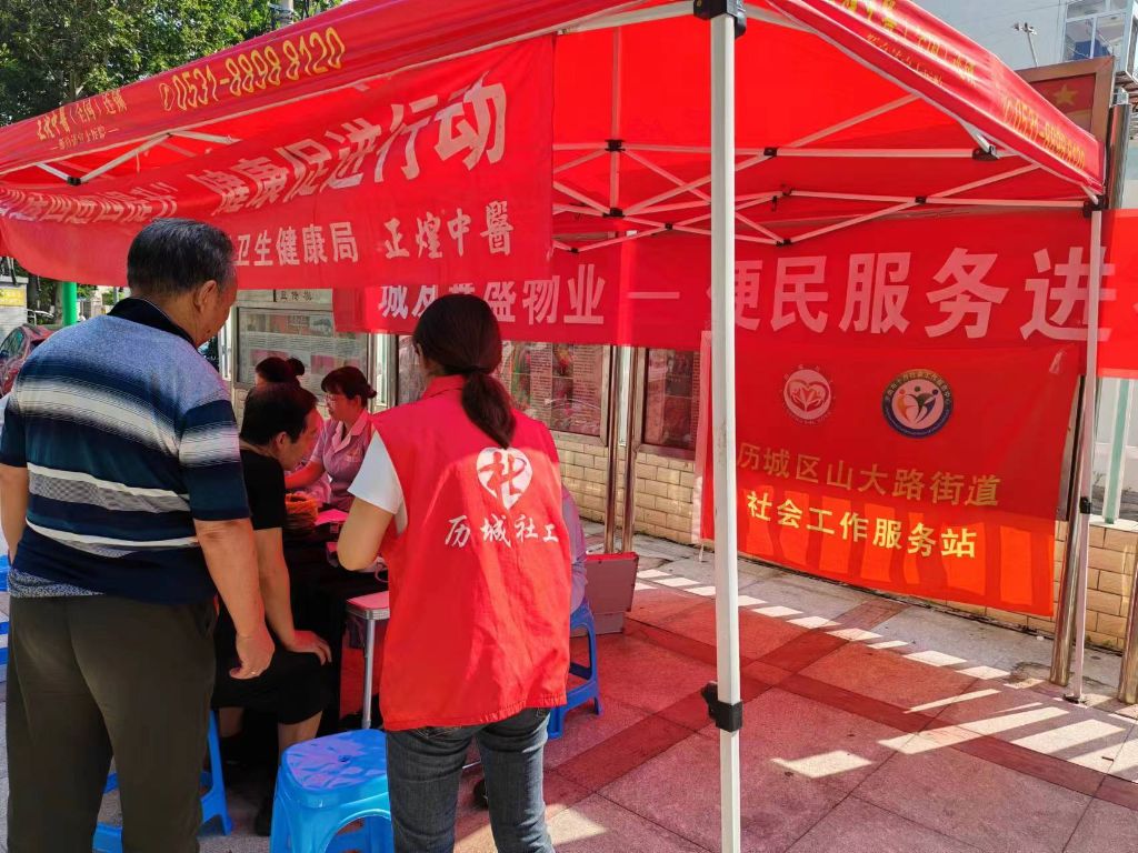 为更好的服务居民,提升居民的健康理念,倡导科学合理健康的生活方式、普及健康知识和自我保健意识,让居民不出小区就能享受到贴心、周到、便利化的医疗保健服务,8月30日上午,山大路街道社工站与城发鑫盛物业、市中区卫生健康局正煌中医联动开展“便民服务进社区”义诊活动。