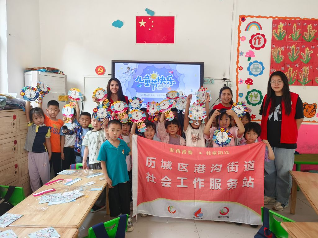 通过调研走访发现,辖区内乡村儿童的文娱活动较城市社区的儿童存在较弱的现象,无论是在学校还是家中,乡村儿童的精神文化生活存在匮乏现象。为深入开展文化惠民活动,不断丰富辖区乡村儿童的精神文化生活,积极搭建儿童互助交流平台。5月25日,在六一儿童节来临之际,港沟街道社工站组织开展“助童”计划之“巧手慧心乐童年,滴答作响好时光”儿童文化赋能活动,以手工制作为媒介,带领孩子们感受美好时光。