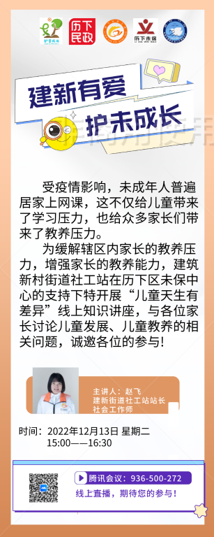 2022年12月13日下午三点,“建新有爱,护未成长”亲职教育讲座正式开讲!