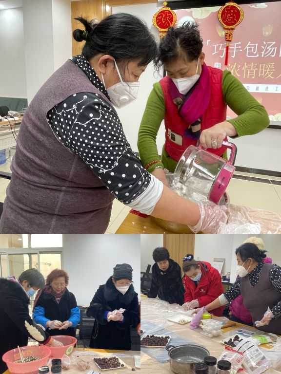 为弘扬传统民俗文化,满足社区居民在精神、文化、娱乐等多方面的综合需求,凝聚群众向心力,增强社区居民的获得感和幸福感,2月3日上午,匡山街道社工站联合老屯东路社区居委会、济南农商银行家电商城支行,组织社区能人、居民骨干,发动社工、社区、志愿者、慈善力量,举办“巧手包汤圆,浓情暖人心”元宵节主题活动,大家一起做游戏、抢红包、包汤圆,热热闹闹欢度元宵佳节。
