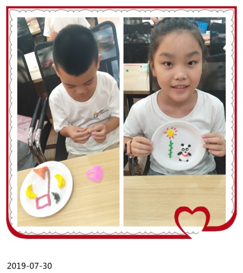 活动伊始,社工简要介绍本次活动及活动流程,同时社工拿出服务对象的“个人计划表”并引导填写今日作业计划。其后,服务对象们纷纷拿出当日作业开始认真书写,期间有的认真书写字帖,认真完成每一笔、每一画;有的冥思苦想,面对数学大山勇往直前毫不退缩;有的念念有词,在无声中背诵古诗,感悟中国古代文学的博大精深。期间不少服务对象遇到困难,举手向社工示意请求帮助,在社工的引导下顺利完成当日作业。社工在帮助服务对象检查完作业和当日计划后,拿出准备好的彩泥等材料分发给每位小朋友,引导服务对象们说出自己眼中的祖国,并协助服务对象用彩泥将其捏制出来,不一会憨态可掬的熊猫、冉冉升起的国旗、皮薄馅大的饺子等等,中国元素满满、创意满满,活动最后服务对象们带着“收获”离开了。