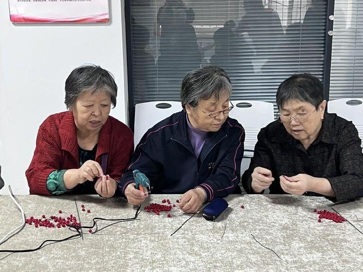 活动在老人们爽朗的笑声中拉开帷幕,社工首先为每位老年人分发珠子、软线、剪刀等串珠工具,接着,社工向老年人们讲解了制作冬青果花束的基本操作和手法,老年人们认真听老师的讲解,练习操作手法,在社工的耐心讲解和手把手指导下,老年人的手法越来越熟练了。手工串珠的活动看似简单,但其实对于老人们来说却不是一件容易的事,有的老人眼睛看不清了,或者跟不上节奏,社工就帮老年人们穿珠子、记步骤,在互帮互助中,一支支独一无二的花枝诞生了,大家互相展示着自己作品,脸上不禁洋溢出发自内心的喜悦。