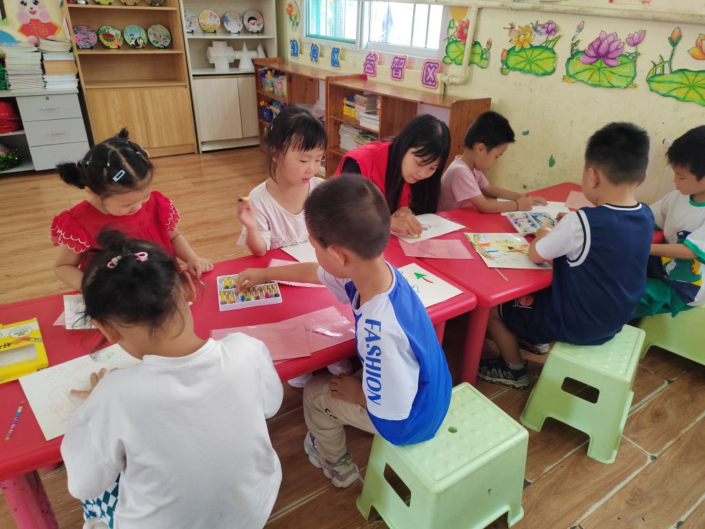 对身边辛勤耕耘的老师,什么礼物最能表达孩子们浓浓的情谊呢,社工们想到不如让孩子们在贺卡上画出最真挚的祝福,送给自己最喜爱的老师。孩子们热情洋溢,每个人用画笔一点点在贺卡上画出自己心里想表达的祝福。孩子们的世界是五彩斑斓的,有抽象派有写实派,还有觉的贺卡太小不足以表达心中的热情在地上画的,但最让我们感动的是当我们问孩子最想给老师说的的话时,孩子真挚的说“想对老师说,老师辛苦了!”。全场充溢着浓浓的师爱、满满的感恩。