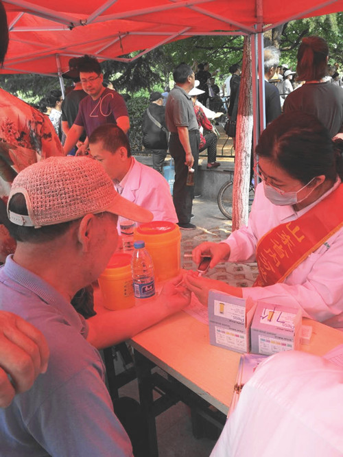 活动当天,山东省糖尿病医院志愿队带着相关测量仪器,来到济南革命烈士陵园为园区内的老年人提供服务。血糖检测要求空腹或饮食后两小时进行,志愿队成员七点半就来到园区,为晨练的老年人进行义诊。建立病例、检测血糖、测量血压,到场的专家根据测量结果,指导老人们在日常生活中有效的控制血压和血糖。