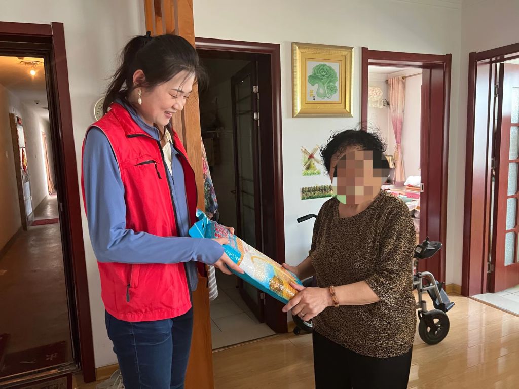 “我们来给您送东西,祝您端午节安康。”社工来到服务对象黄阿姨的家中,黄阿姨的老伴是肢体二级残疾,虽然肢体活动受限但气色状态良好,这些向好表现离不开黄阿姨的细心照顾。社工与黄阿姨亲切交谈,询问着近期生活状况关心她的实际需求,社工的到来让黄阿姨倍感节日氛围,连声道谢,她说:“谢谢你们的关心和帮助,有了你们的支持,生活上无论多大的困难我都会乐观对待。”