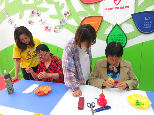 【山泉槐荫兴福项目组】社工开展“乐融兴福·多彩人生”手工串珠第三次小组活动