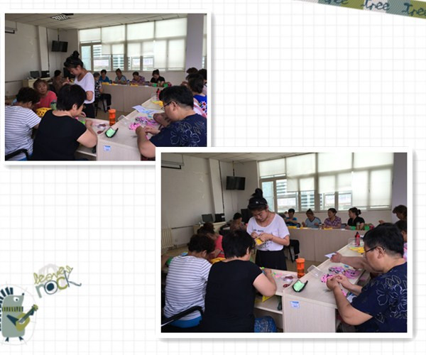 6月21日下午,创意家居装饰品制作小组最后一次聚会如期在居委会二楼活动室举行。小组活动自开展以来已经进行了七期活动,活动内容受到了组员的喜爱。