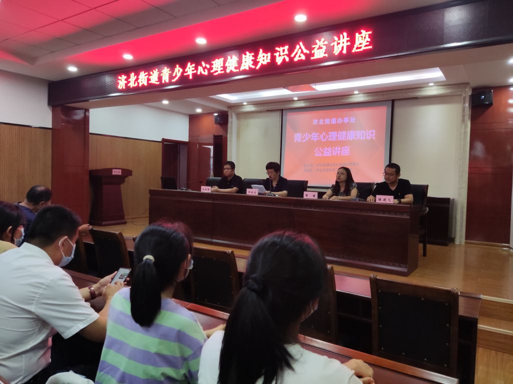 为了满足辖区青少年家庭的心理需求,营造良好的青少年心理健康氛围,济北街道社工站联合济北街道社区社会组织联合会于7月22日开展了“青少年心理健康知识”公益讲座。本次活动开展,受到了区民政局和济北街道领导的大力支持,济北街道办事处副主任、党建工作办公室主任田淑云出席活动并发表讲话,区民政局社会组织科科长张倩一同出席了本活动。