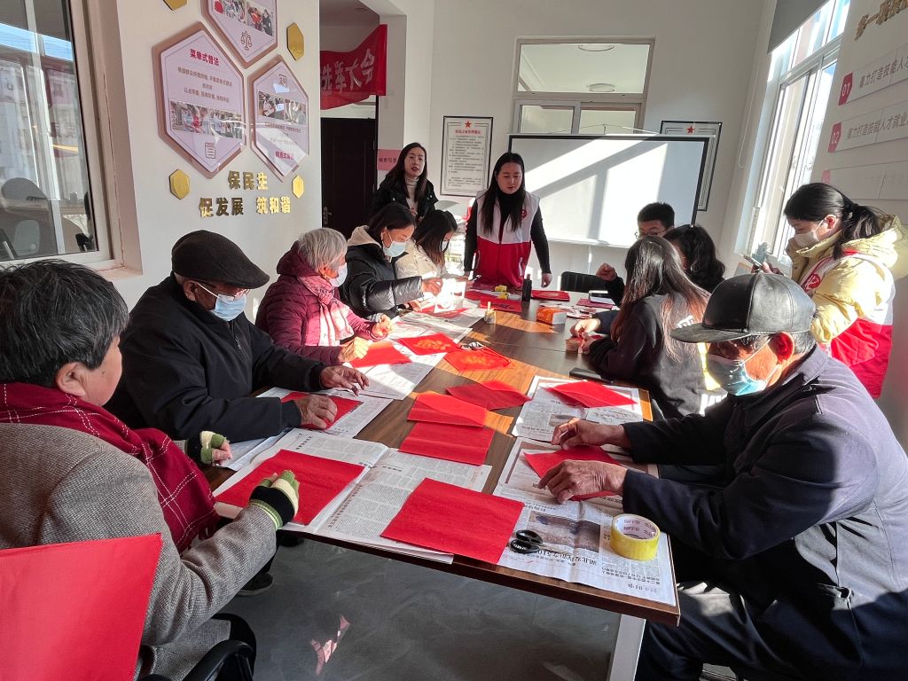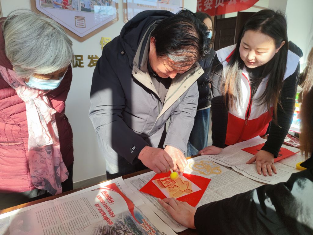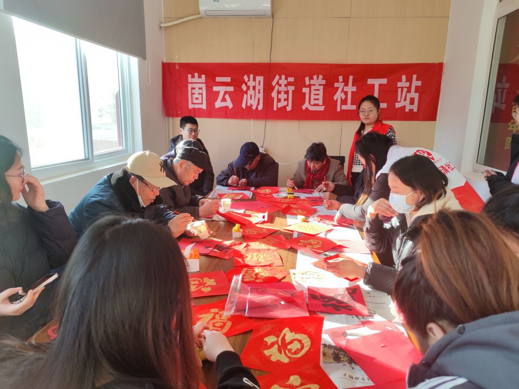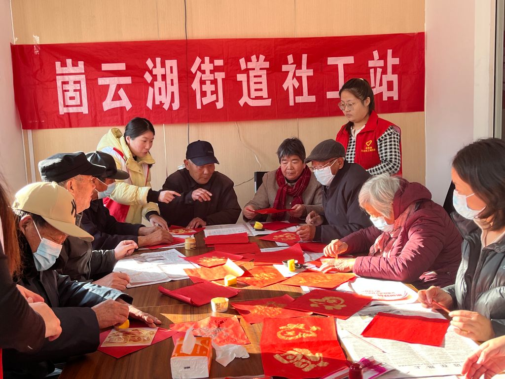 福字拓印添年味,红纸墨香迎新春——崮云湖街道社工站开展暖巢行动