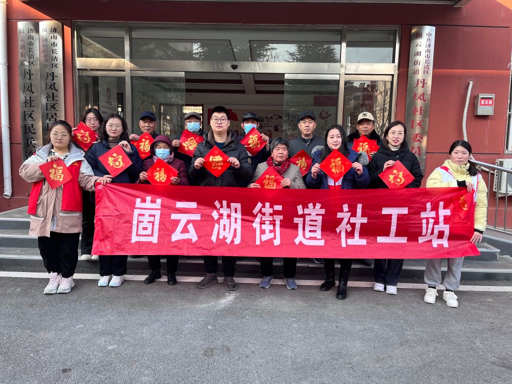为营造喜庆祥和的新春氛围,弘扬中华民族优秀传统文化,让辖区空巢老人感受传统年俗及传统艺术的魅力,增强社区凝聚力,2024年1月10日,崮云湖街道社工站凝聚五社力量,链接志愿者,联合丹凤社区开展“福字拓印添年味,红纸墨香迎新春”迎春送福活动,带领社区空巢老年人走进非遗文化宝库,共同迎接崭新的一年。