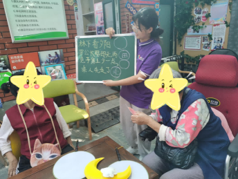 活动开始,社工以猜灯谜的形式活跃小组氛围,通过击鼓传“月”来确定猜谜成员,“林下看夕阳打一个字是‘梦’!”抽到猜字灯谜的服务对象很快猜到了谜底,简单有趣的灯谜调动了小组的活跃程度,传统的游戏方式,也让成员们体会到了浓厚的节日氛围。