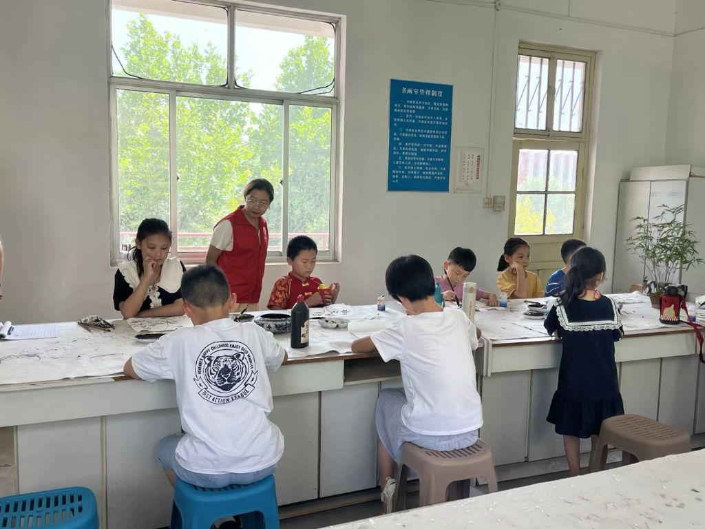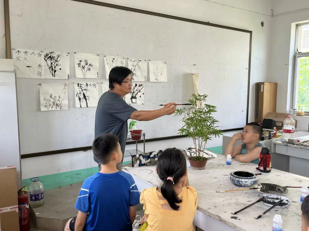 7月14日,董家街道社工站继续链接文化站联合新时代文明实践站、妇联、团工委开展书画小组活动第二节。活动中,老师不仅教授学生们国画创作,更重要的是引导孩子们形成良好的品质,形成健康的人格。