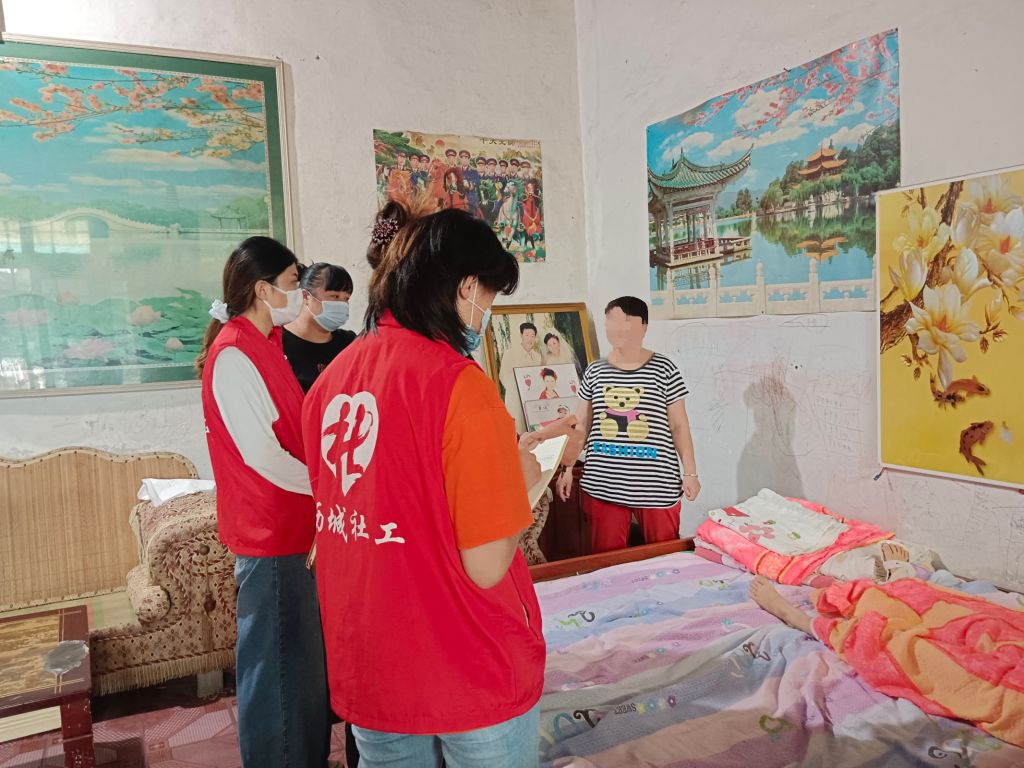 在城角巷村委会,从儿童主任的讲述中了解到龙龙(化名)是因贪玩从屋顶摔下,导致腿部摔伤,由于小朋友易感染体质,一直难以愈合,本该上小学四年级的年纪,只能卧病在床。入户后,社工与家长谈心、拉家常,深入询问儿童的身体、学习情况及家庭状况,听取他们的意见与想法,切实了解目前其生活所面临的困难并对家长进行心理疏导,发掘家庭优势,鼓励家长对孩子坚持做治疗康复。并通过与龙龙聊天互动了解孩子精神状态,发掘孩子兴趣爱好,引导孩子养成良好的学习习惯和生活习惯。