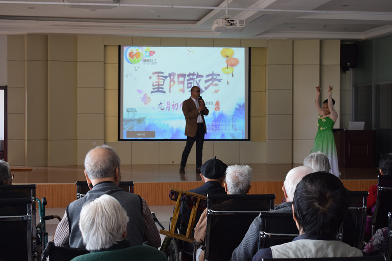 重阳节,为每年的农历九月初九日,是中华民族的传统节日。登高秋游与感恩敬老是当今重阳节日活动的两大重要主题。10月17日上午,值此佳节之际,济南众诚悦银龄养老社工项目组联合槐荫社工南极星项目组共同在槐荫区社会福利服务中心五楼为在其住养老人举办了文艺汇演,与住养老人们一起喜庆佳节、欢度重阳。
