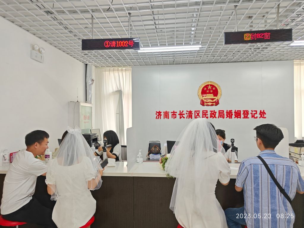 5月20日一早,长清区民政局婚姻登记处等待领证的新人就排起了长队,甜蜜的笑容绽放在每个人的脸上,长清区社工及新时代文明志愿者也早早的到位,协助维持秩序,以志愿行动维护美好爱情。看着忙前忙后的社工们,有的新人不禁发出疑问:“我看你们马甲上写着“长清社工”你们是干什么的?专门负责婚姻登记吗?”,现场的社工为新人澄清了自己的身份,向大家介绍社工站及社工服务,并表示有困难、找社工,每个街道都有一个社工站,站上的社工会尽自己最大的努力为大家服务!长清区民政局党组书记、局长王允松,党组成员、副局长许好军也为现场的新人送上了诚挚的祝福。