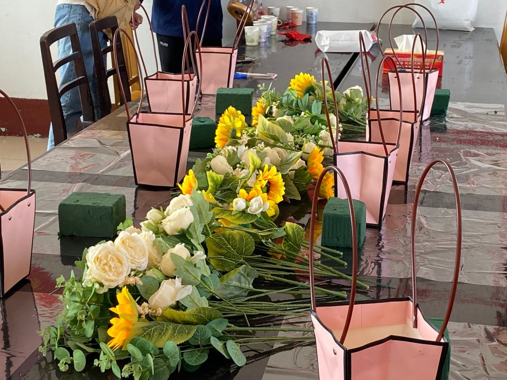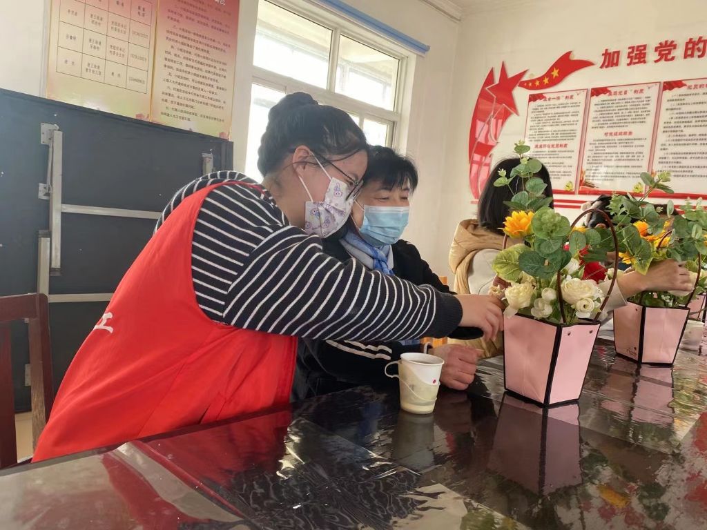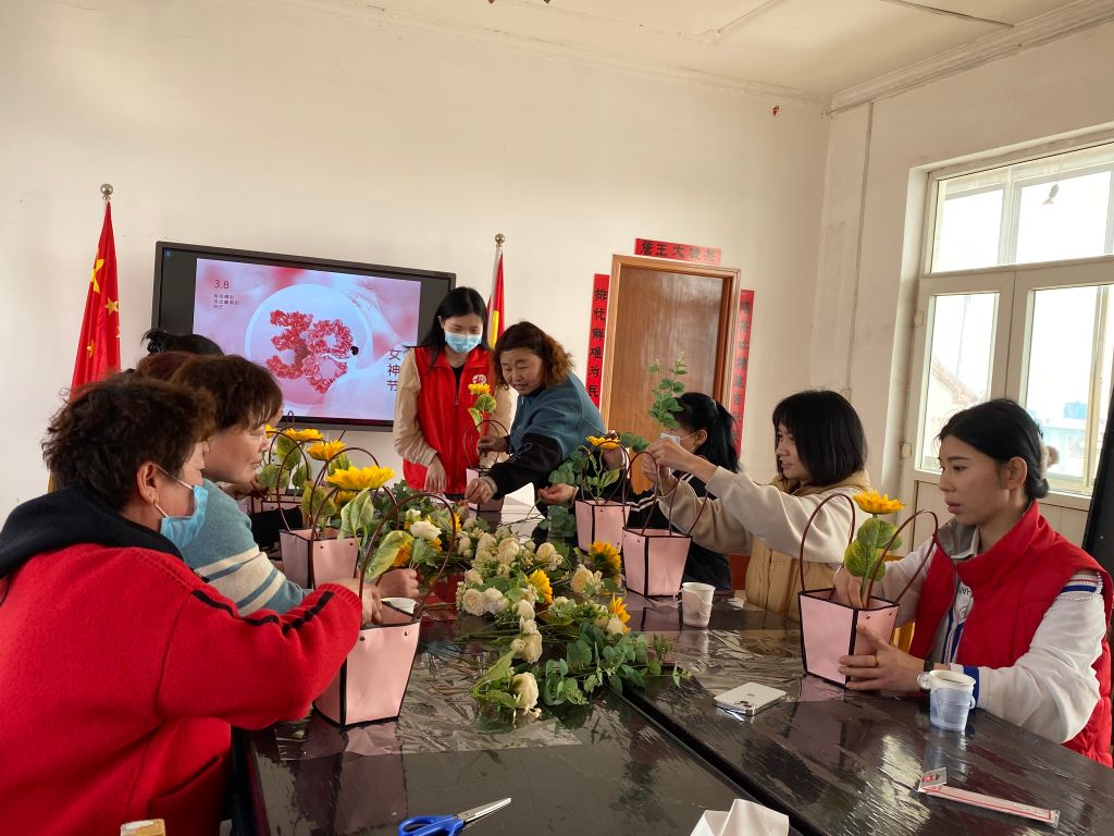 在三八妇女节来临之际,为丰富辖区妇女的业余生活,提高文化素养,陶冶艺术情操,让辖区妇女度过一个温馨浪漫的节日。3月8日,唐王街道社工站在纸坊管区与辖区妇女共同开展了“以花为媒,爱在三八”手工DIY创意插花活动。