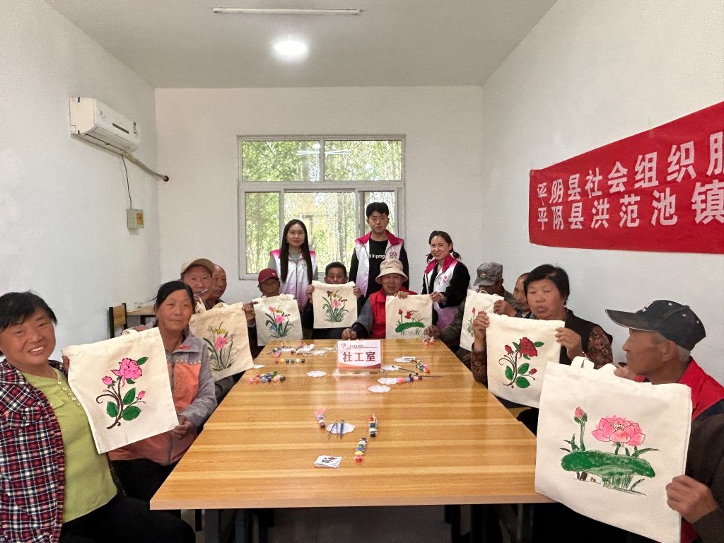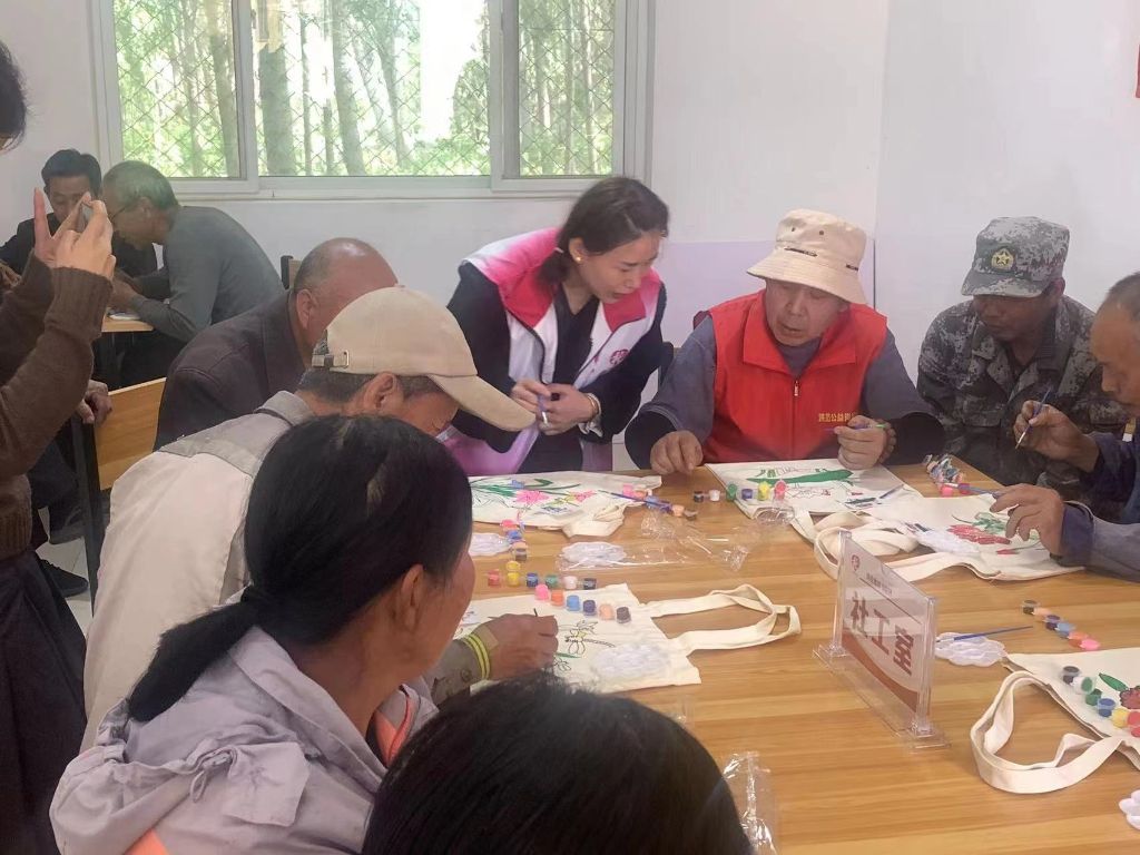 为了丰富老年人的精神生活,锻炼她们的动手能力,参与群体活动。2023年5月9日上午,洪范池镇社工站联合社区社会组织联合会一起走进书院村,开展“巧手绘幸福,夕阳别样红”的手绘帆布袋活动。