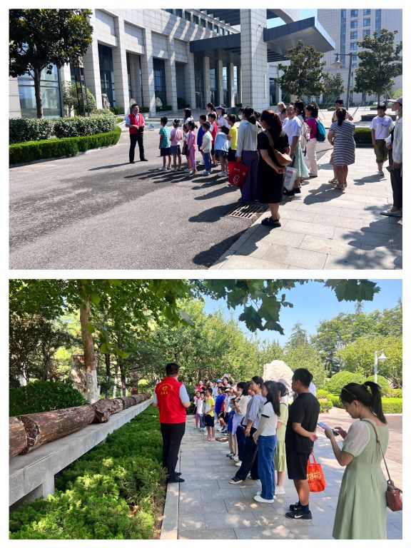 8月10日,唐冶街道社工站联合鲁商凤凰城社区组织辖区青少年前往山东探矿博物馆(科学家精神教育基地),开展自然科学博物研学游。街道社工站的工作人员在参观前向青少年介绍参观要求,引导青少年有序参观。