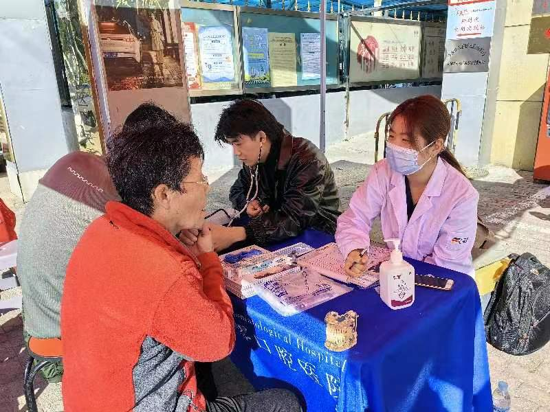 活动开始前,社工和社区及志愿者接九二零口腔医院的医生到达义诊现场,帮他们布置好了义诊所需要的东西,社工在场维持秩序。活动现场,社工组织居民排好队,挨个就诊,医生为大家进行健康咨询、测血糖、量血压等,诊疗过后细心叮嘱大家要养成良好的健康生活习惯和爱护牙齿的生活常识。