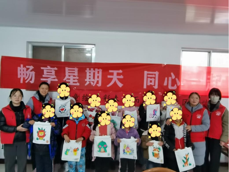 活动开始,社工引导孩子们进行自我介绍和才艺展示,通过才艺展示拉近了社工与孩子们的距离,让孩子们不再拘束,全心的投入到活动中来。接着社工为孩子们发放DIY涂鸦帆布袋以及需要的材料,孩子们很认真地涂起来,大家相互交流,分享涂色的乐趣,很快一个个帆布袋就涂好了,孩子们看着自己的成果,收获了满满的快乐和友谊。