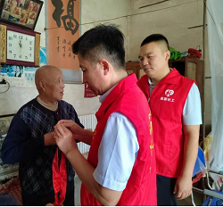 首先慰问的对象是西河北村一名89岁高龄的抗美援朝老党员,老党员听说我行要去慰问,一早便在房屋门口等着我们的到来。社工、银行志愿者与老党员亲切交谈,认真聆听他讲述入党以来的奋斗故事。在交谈中,老党员激动的拿出抗美援朝纪念章、在党50周年纪念章、老党员事迹册等供我们观摩学习。