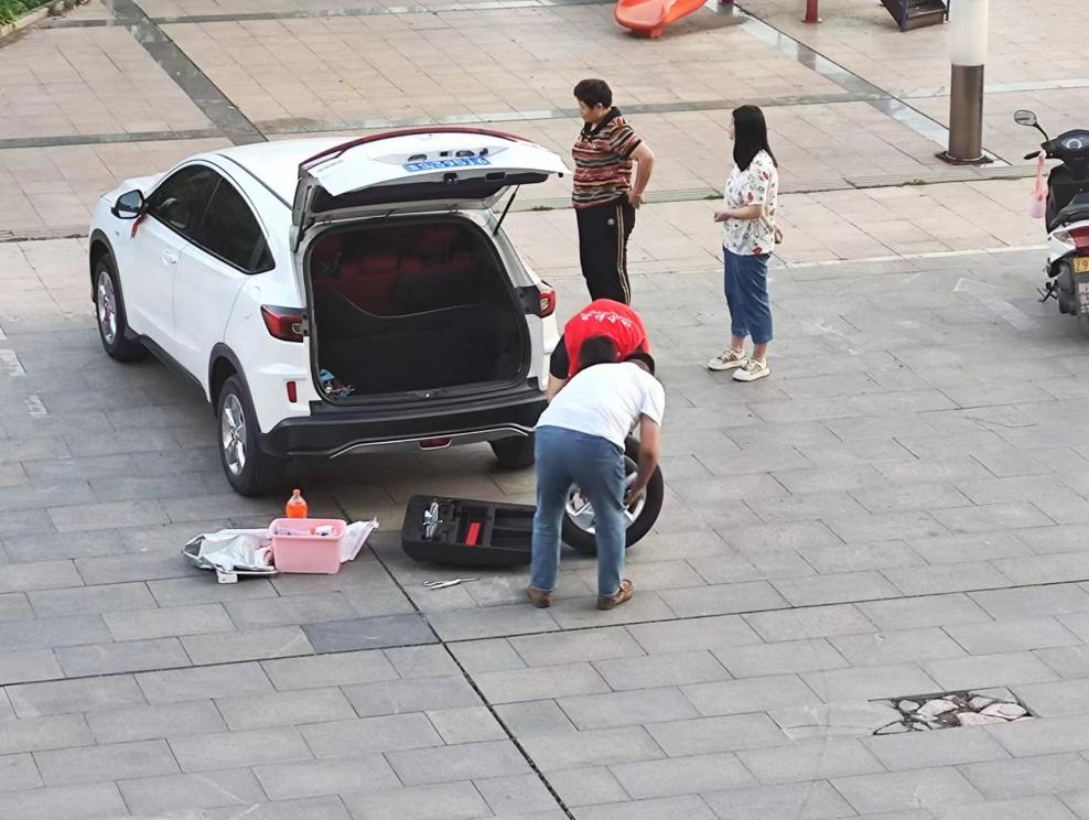 艾山街道社工站在2023年6月8日开展社区小组活动期间,接到一起来自群众更换备胎的求助,因事发突然周边居民较少,加之没有相应维修站点。社工站社工决定自主协助车主更换备胎,通过装卸千斤顶、装卸轮胎等一系列操作,成功赶在车主孩子放学前完成了轮胎更换,并叮嘱车主熟悉了相应操作流程及相关注意事项,确保可以独自应对后续问题。