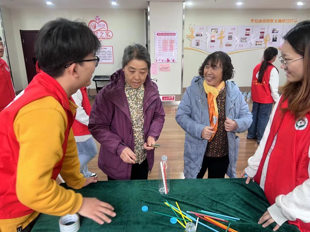 为了丰富辖区老年人晚年精神文化生活,增强邻里之间的互动交往,进一步打造老年人“睦邻友好型”社区,唐冶街道社工站于11月15日联合青爱晚养老协会在华夏山青社区开展“和谐邻里,趣享运动”志愿服务活动。