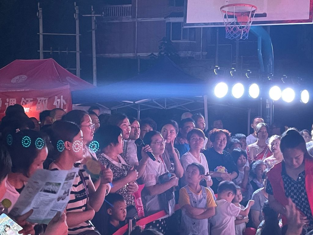 晚会伊始,热情洋溢的志愿者们准时抵达活动现场,在站点社工的带领下,迅速投入到紧张有序的准备工作中。伴随着音乐节奏的递进,现场居民的热情被瞬间点燃,每个人都沉浸在现场欢快的氛围中,感受这场夏日晚会的魅力。随后,歌曲、舞蹈以及融合传统和现代元素的节目轮番上演,为社区居民呈现了一场视觉盛宴,也展现出社区居民幸福新生活的真实画卷,为社区生活增添了一抹丰润的色彩。