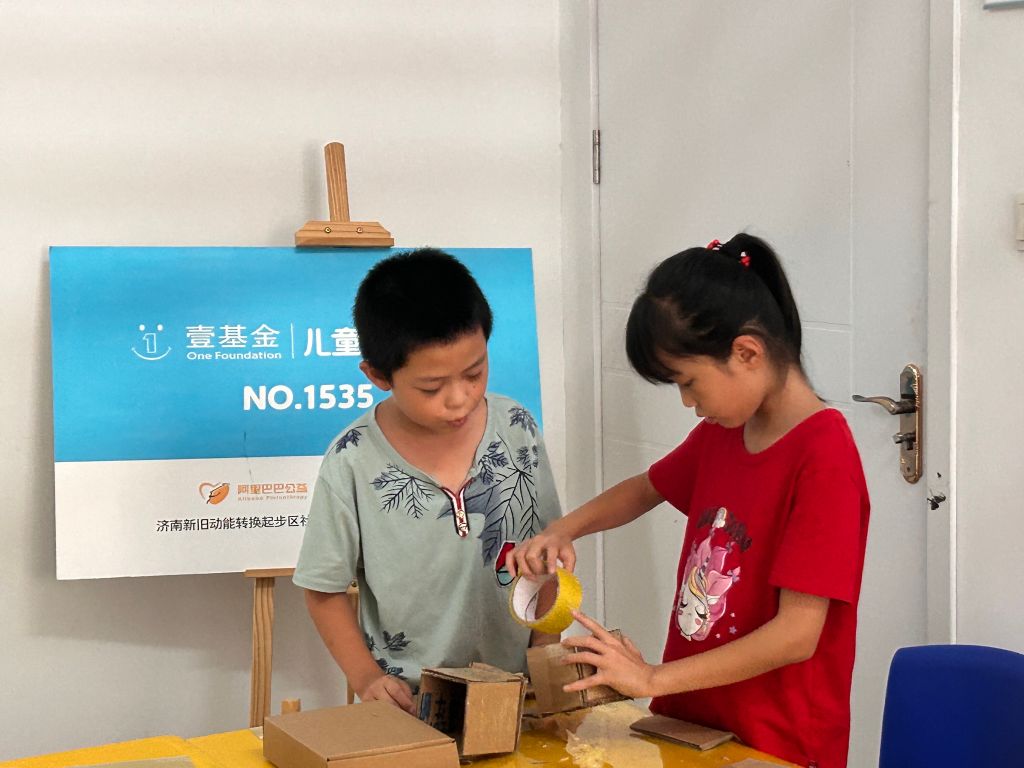 为让孩子们深刻体会到旧物回收利⽤再创造的神奇之处,社工带领孩子们将平时被视为废弃物的纸箱,通过巧手和创意,变废为宝。在社工的指导下,孩子们认真地将废弃的纸箱裁剪、拼接、黏合,并用彩色粘土加以装饰,每一个动作都透露出他们的专注和热情。有的孩子在制作过程中遇到了困难,但在社工和同伴的鼓励与帮助下,他们很快克服了问题,继续投入到创作中。